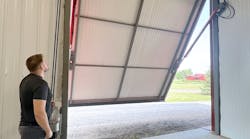 Traditionally, these operate through a system of electric motors and cables. Schweiss (www.bifold.com), a leader in hydraulic one-piece and bi-fold doors, utilizes patented lift-strap technology in its installations. These lift straps, attached to the door, wrap around a lift drum as the door is opened.