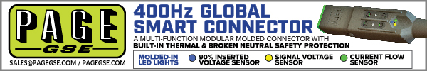 | | |  | | | From PAGE GSE PAGE GSE will introduce its most advanced molded connector ever made, the P3X Global Connector. The P3X has molded-in LEDs that allow operators to verify when the plug is 90-percent inserted visually, when aircraft E&F is present, and when 400Hz electrical power is on. The P3X Global Connector is installable onto all 400Hz solid state frequency con... |
