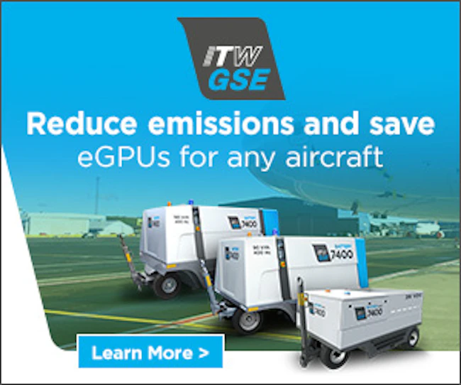 | | | | Sponsored | From ITW GSE The ITW GSE 7400 eGPUs offers flexibility, zero emissions, silent operation, and reliable power. The eGPUs improve the working environment for operating staff and are ideal for gates with no fixed power installation, remote parking areas and hangars. |